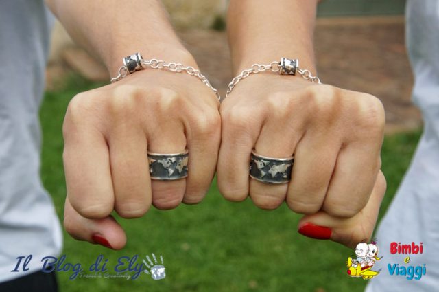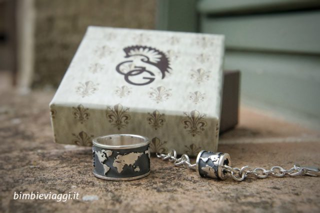 Non posso non iniziare questa carrellata con i gioielli di viaggio, l’ultimo nato in casa Bimbieviaggi, il “regalo importante” per eccellenza. La nostra piccola collezione sta andando alla grande, sia tra le mamme globetrotter che tra i papà, trattandosi di gioielli unisex. Qualcuno l’ha acquistato come regalo di compleanno, qualcuno addirittura per celebrare un fidanzamento: ogni pezzo è in argento (oro su richiesta) ed è realizzato da una storica gioielleria di Firenze. Oltre all’anello a fascia sono disponibili due formati di barilotto, che possono essere inseriti in un braccialetto (compresi quelli componibili in commercio) o in una collanina. Regala i gioielli di viaggio a chi ha voglia ti porti sempre il mondo addosso!