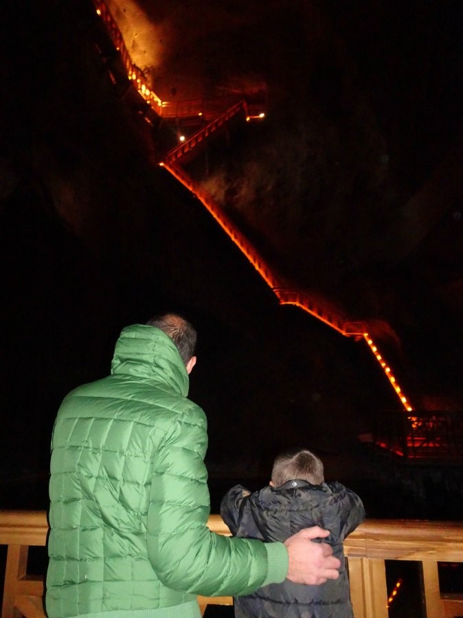 La visita alle miniere di sale è lunga ed impegnativa. Si cammina per circa 3km e, essendoci molte scale, non si può utilizzare il passeggino che viene lasciato in un deposito gratuito e custodito: consiglio dunque un marsupio per chi ha bambini piccoli e di armarsi di tanta pazienza per chi li ha più grandini come i nostri.