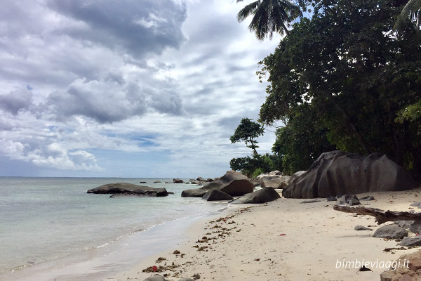 Qualche mattina mio marito ha fatto immersioni mentre io ed il cucciolo ci siamo sempre goduti la spiaggia. Oltre ai giochi con la sabbia ed ai bagni abbiamo fatto anche lunghe e piacevoli passeggiate sulla spiaggia e tra le grandi rocce nere tipiche delle Seychelles che delimitavano da un lato la baia. Malgrado non fosse il periodo migliore dell’anno per le immersioni la visibilità era comunque buone ed ha fatto dei bei filmati di branchi di pesci colorati, piccoli squaletti e tartarughe.