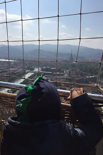 Il giro in mongolfiera dura 15 minuti. Che emozione salire sulla mongolfiera, non ci eravamo mai stati, e devo dire che è un’esperienza bellissima: anche se è ancorata a terra, si può godere di un panorama da mozzare il fiato! Vedere la Mole, i pennoni dello Juventus Stadium, la basilica di Superga, è stato davvero emozionante.