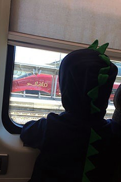 Siamo partiti da Roma con il Frecciarossa, e devo dire che, come era successo per Milano, anche la tratta più lunga ha superato l’esame: abbiamo preso il treno delle 12.20 e dopo un sonnellino mio e di Dodo, puntuale alle 16.50, siamo usciti dalla stazione Porta Nuova. Devo fare solo una piccola segnalazione: noi eravamo alla carrozza 11 ed entrambe le toilette erano sprovviste di fasciatoio per il cambio dei bambini, quindi mamme e papàà, fate attenzione a quando prenotate il treno, non tutti sono provvisti di fasciatoi.
