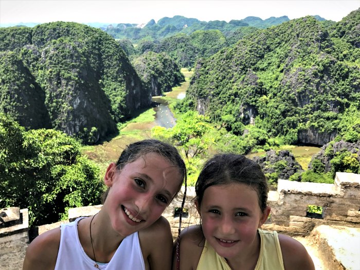 La nostra guida ci ha detto essere molto simile a Tam Coc e ci ha consigliato di ammirare Tam Coc dall’alto e di navigare il fiume da Trang An in quanto meno incasinato e ci siamo fidati del suo consiglio. Appena arrivati alla boat station si sale su una piccola barchetta a remi guidata da locali che difficilmente parlano inglese, a disposizione ci sono delle pagaie se si vuole dare una mano (bambine entusiaste ovviamente!) e si fa un bel giro di circa 2 ore passando attraverso grotte strettissime e sbucando in scenari alla Indiana Jones, insomma per noi un’esperienza bellissima!