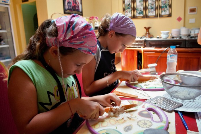• da gran seguaci di Masterchef e su specifica richiesta di Anna e Benni avevamo organizzato, prenotandola dall’Italia, una cooking class con “Gioan Cooking Class”, una scuola di cucina locale gestita da 2 sorelle super organizzate, super simpatiche e pure un po’ matte! E’ stata una delle esperienze più divertenti della vacanza e ha riscosso il successo di tutta la famiglia!