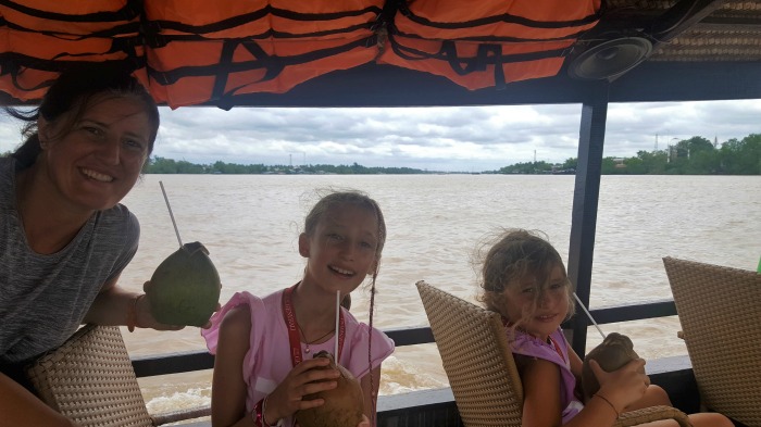 La scelta del driver ci ha permesso di fare una sosta anche alle isole di fronte al paese di My Tho dove ci aspettava una guida locale. Insieme a lui abbiamo fatto il giro delle isole e dei piccoli canali che le circondano, facendo delle soste interessanti per vedere alcune delle attività familiari che vi si conducono. E’ un giro sicuramente pensato per turisti ma alle bambine è piaciuto molto: