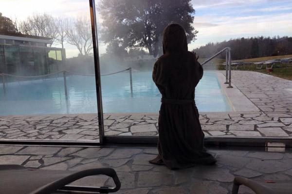 Sotto la struttura alberghiera, percorrendo un bellissimo corridoio, dove abbiamo fatto correre un pochino il nostro bimbo, si arriva alla zona terme riservata ai clienti dell’hotel. È davvero una bella comodità uscire dalla stanza in costume ed accappatoio e poter accedere al percorso benessere ed inoltre la soluzione della parte riservata agli ospiti dell’albergo è stata molto apprezzata da parte nostra, anche perché ci si può accedere tutto il giorno con orario continuato fino a tarda sera e quindi non vi era mai troppa gente in quanto le persone andavano e venivano in continuazione.