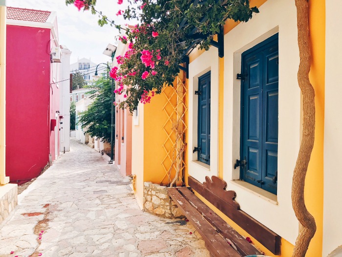 Calchi è piccola, pedonale, molto poco modaiola e quindi con un turismo selezionato: per lo più inglesi, greci e alcuni italiani che hanno voglia di andare in Grecia non per fare le 4 di mattina a ballare sulla spiaggia, ma per godersi un mare strepitoso, dell’ottimo cibo e un po’ di sano relax con la R maiuscola. Qui non ci sono le tipiche case bianche con tetto azzurro che da sempre sono sinonimo di Grecia: qui è tutto diverso, colorato, ogni casa unica nel suo genere.