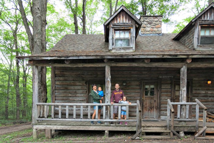 La baita era veramente carina, i bimbi sono stati entusiasti di esplorare il bosco e alla sera tra gli alberi sono apparse centinaia di lucciole. La sala per la cena è uno stanzone con tavoli e panche di legno, e andando il giorno giusto è probabile trovare un buon numero di canadesi che fa baldoria. Purtroppo (o per fortuna?) quando ci siamo andati noi c’erano solo altri due cottage occupati e nessun altro ospite a cena, quindi abbiamo potuto mangiare in tutta tranquillità. Sia la cena che la colazione sono state piacevoli, buone e abbondantissime e Dario e Margherita hanno potuto fare la loro prima colazione a base di uova, bacon e pancake allo sciroppo d’acero.