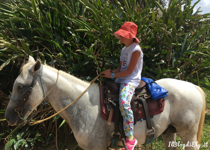 Sofia aveva il suo cavallo ed era super entusiasta! Unica pecca della girata, il grande caldo, per cui mi raccomando, dotatevi di cappello e tanta acqua! Solitamente l’escursione parte da una fabbrica di sigari, (dice originali e fatti a mano che, però, hanno un costo più alto rispetto ad altri trovati altrove), per continuare con le soste dedicate al Rhum e al caffè.