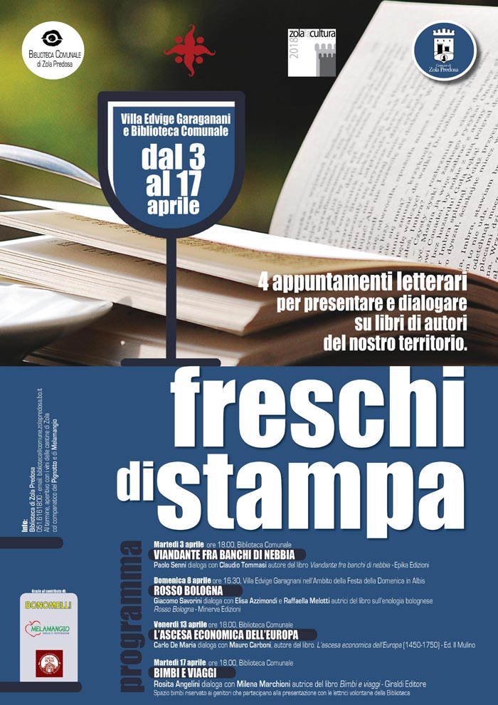 Dal 3 al 17 aprile si tiene a Zola Predosa, in provincia di Bologna, una rassegna dal titolo “Freschi di Stampa”. Perché ve ne parlo? Perché ci sarò anch’io con “Bimbi e Viaggi: la guida completa per viaggiare sereni con i bambini“.
