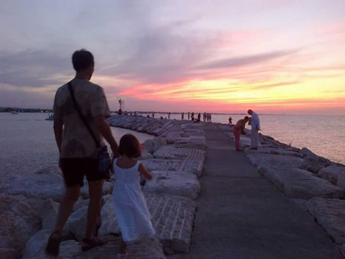 A Rimini non può mancare una passeggiata al tramonto sul molo vicino al Rock Island, oppure alla darsena, per fermarsi al bar che c’è sotto, per ammirare il mare che si tinge di mille colori…
