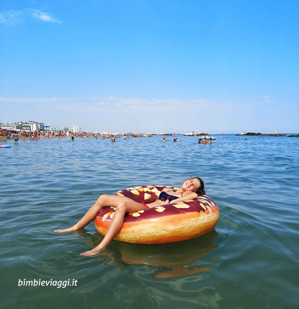 Il mare romagnolo é perfetto per i bambini anche piccoli, poiché l’acqua é bassa e calma e digrada molto dolcemente. A Cattolica poi ci sono i frangiflutti, quindi é come avere una sorta di piscina naturale che, nei bagni dove eravamo noi, é presidiata dai bagnini in corrispondenza delle aperture, per garantire la massima sicurezza controllando chi si avventura al largo.