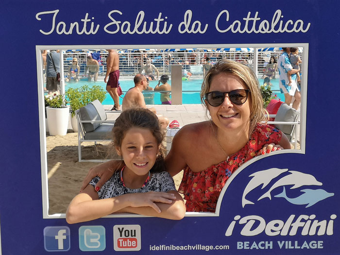 Durante la nostra permanenza a Cattolica, abbiamo trascorso le giornate di mare presso “I Delfini Beach Village“, un grande stabilimento balneare che include i bagni dal 54 al 64. Il Village si trova al centro di Cattolica, a metà tra il porto a sud e l’acquario al nord, in corrispondenza della Via Dante, il centro pedonale con tutti i negozi.