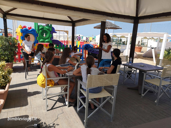 Sicuramente ho dimenticato qualcosa perché le attività sono tantissime.. In sostanza si tratta di un vero e proprio villaggio turistico in spiaggia, dove i bimbi possono muoversi in libertà (ai limiti dello stabilimento ci sono barriere divisorie).