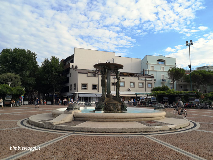Piazza Primo Maggio, a due passi dal mare, é anche conosciuta come Piazza delle Fontane, grazie alle fontane danzanti che la animano di sera (quando non si svolgono manifestazioni in piazza). Da notare la bellissima Fontana delle Sirene, scultura futurista che, con l’attigua Villa Fulgida, richiama vecchi ricordi della Belle Epoque.