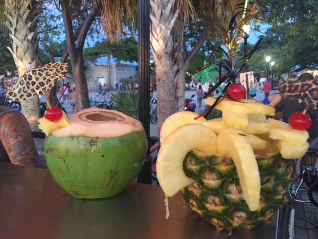 La visita è molto ben strutturata: dei volontari fanno tour guidati per chi lo desidera, ma forniscono anche un “percorso” con spiegazioni (anche in italiano!) su un foglio che e’ di supporto a chi preferisce una visita individuale e indipendente. La casa e’ veramente bella e facciamo conoscenza praticamente di tutti i gatti che la abitano e che sono tutti discendenti di quelli che furono i gatti di Hemingway. A malincuore Alessandro si convince a venire via, ma solo con la promessa di un bel bagno in piscina. In effetti e’ proprio quello che ci voleva e fortuna vuole che capitiamo proprio durante l’happy hour del bar in piscina che ci regala birra e cocktail deliziosi e rinfrescanti.