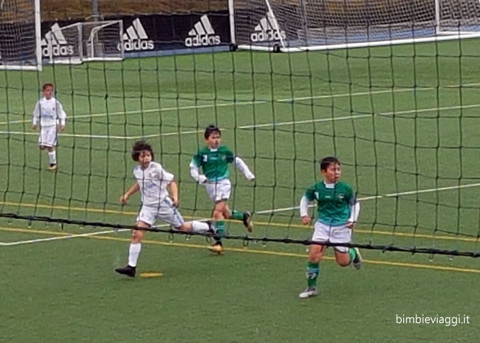La seconda tappa del nostro weekend calcistico è stata la visita a Ciudad Real Madrid. Il club possiede una vera e propria città sportiva vicino all’aeroporto Barajas con qualcosa come 11 campi da calcio e un vero e proprio stadio (Estadio Alfredo Di Stefano) dove si allena la prima squadra. Ovviamente gli allenamenti avvengono a porte chiuse (con rare eccezioni in cui si apre l’accesso ai fans). Durante il weekend, però, vi sono le partite delle squadre giovanili, ossia la “Cantera”, che va dai bambini di 7 anni (Prebenjamin) fino ai 18enni (Juvenil A).