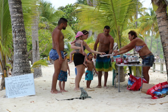 Verso l’ora di pranzo, tra le palme, una gentile signora tutti i giorni si adopera per creare una piccola “cucina” home-made sulla spiaggia dove potrete acquistare favolose crêpes ed accrás, rigorosamente da asporto, seguite le iguane vi porteranno al Au Coin des Iguanes, con tanto di menù scritto a mano sul cartello.
