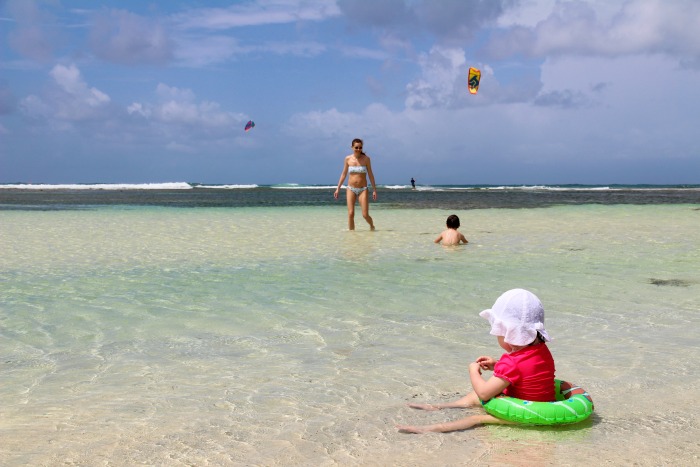 La spiaggia è ideale per i bambini piccoli, soprattutto la piccola ansa che si crea sulla punta della spiaggia, dopo il molo, vicino alla scuola di kytesurf. Qui una barriera corallina ripara la zona dalla corrente e con l’abbassarsi della marea vedrete tanti pesciolini colorati. Unico accorgimento andate presto la mattina per prendere i posti migliori, più riparati dal venti e all’ombra delle palme.