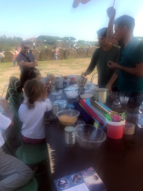 E poi c’è stato il nostro laboratorio “Non ti butto ti suono” un laboratorio di musica ideato dall’Associazione Crescente, che si prende cura non solo dei piccoli, ma di un’intera generazione, grazie alle loro attività ludoco-espressive. Ieri con i bambini, hanno creato strumenti musicali con oggetti che in realtà si usano per altre scopi, soprattutto in cucina. Ciotole di plastica, riso, ceci secchi o altri legumi che abbiamo in casa e la pellicola. Ci siamo muniti anche di carta crespa colorata e bacchette (vanno bene anche quelle del ristorante orientale) e abbiamo creato un bellissimo tamburo. Stesso identico procedimento per dar vita a delle maracas: basta avere un barattolo di latta e coprirlo con una vaschetta di plastica, quella per i dolci andrà benissimo, usare sempre riso e legumi e insieme alla melodia del tamburo avremo anche quella dello strumento sudamericano.
