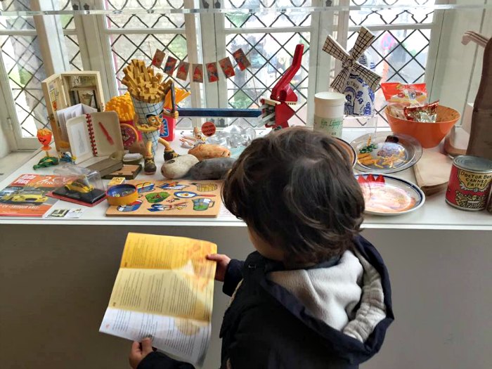 Data la pioggia ci siamo subito recati al Frietmuseum imboccando la Vlamingstraat da piazza Markt. Il museo della patatina fritta è una delle tappe dedicate ai bimbi… ma col senno di poi assolutamente evitabile. Il museo è su due piani quindi un po’ scomodo con il passeggino, i bagni sono puliti e per i bambini viene indotta una specie di caccia al tesoro all’interno del museo. La parte della visita che Lorenzo ha più apprezzato è la ricostruzione di una friggitoria tipica al secondo piano, con pentole ed altri utensili con cui si può giocare. Bianca ha dormito tutto il tempo in passeggino ma ha molto apprezzato la cioccolata calda e il waffle del Chcolate Jungle Bar, proprio di fianco al museo della patatina fritta.