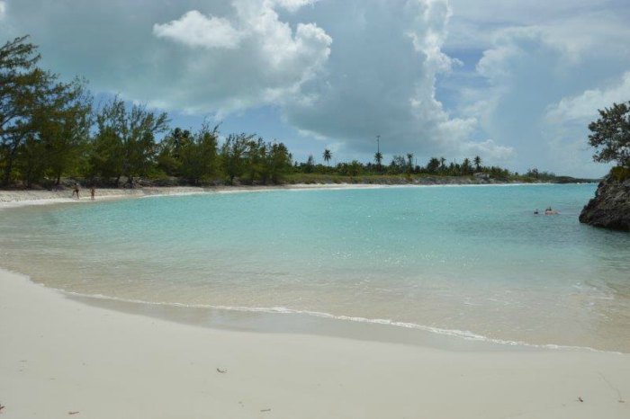 Hoopers Bay si trova all’incirca a metà dell’isola di Exuma ed è stata la prima spiaggia visitata in quanto dormivamo lì. Alzarsi la mattina, indossare il costume e passeggiare su questa lunga baia completamente deserta era il mio toccasana quotidiano. Sabbia bianca, mare sempre calmo e turchese. Vicino ai pontili, sul lato destro della spiaggia, decine di tartarughe nuotano indisturbate dalla mattina alla sera, mio figlio estasiato è stato in acqua con loro ore intere, un’emozione unica davvero.