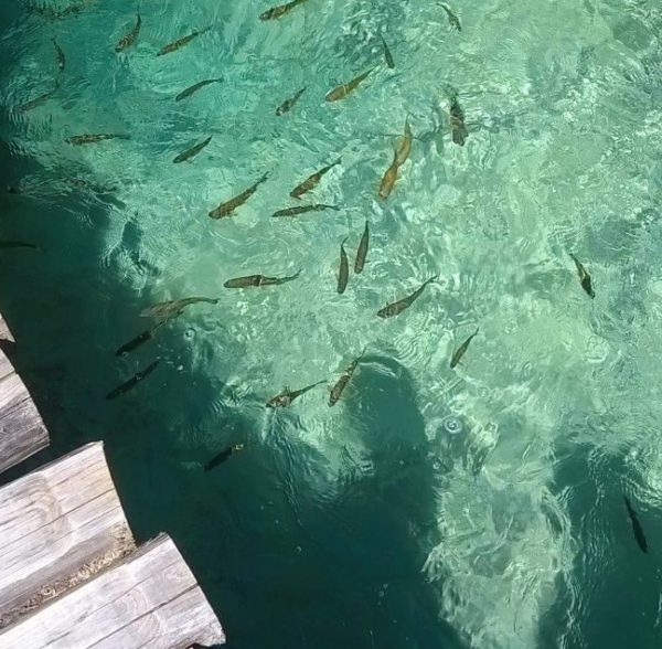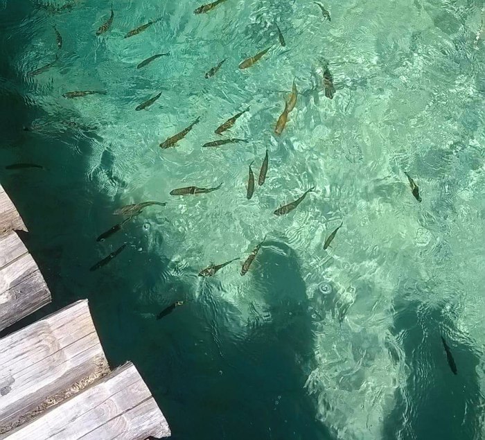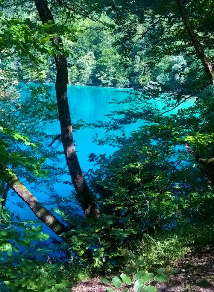 Facciamo poca coda per prendere biglietti e mappe alla biglietteria e alle 8.00 siamo immersi nell’eden: laghi turchesi, scintillanti nel sole di luglio circondati da un silenzio quasi innaturale.