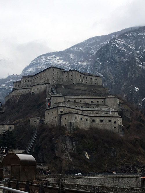 Il nostro giro tra cavalieri e principesse è iniziato con la prima fortezza che si incontra una volta passato il confine tra Piemonte e Val d’Aosta: il Forte di Bard.