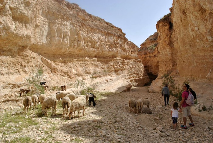 E’ incantevole girare in mezzo alle oasi, fra cascatelle di acqua sui 25 gradi e ranocchie che saltano via sotto un cielo senza nuvole, anche se l’oasi più divertente si rivelerà quella di Tamerza dove si cammina a piedi nudi sul greto sabbioso del fiume per arrivare ad una cascata un poco più alta, dove è possibile passarvi dietro per scoprirne una seconda attraversata dall’arcobaleno. Inutile dire che nostra figlia è impazzita! Per pochi euro, un ragazzo si è offerto di farci da guida e ci ha portato a vedere un piccolo tratto del Mides Canyon, in mezzo a greggi di pecore e capre e alle margherite che in primavera sfidano l’arsura del sole e del vento.