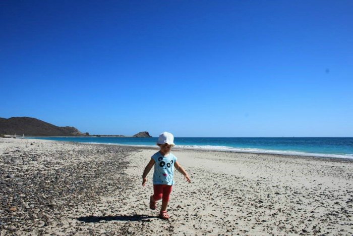 Con un sospirato “torneremo”, ci accontentiamo alla fine di una bellissima mezza giornata e continuiamo il viaggio verso nord, sostando in seguito nella piacevole Los Barriles, dove per la prima volta ci sorprenderà la semplice, fresca e gustosissima cucina di mare messicana della Baja, approvata subito dalla nostra piccola compagna di viaggio.