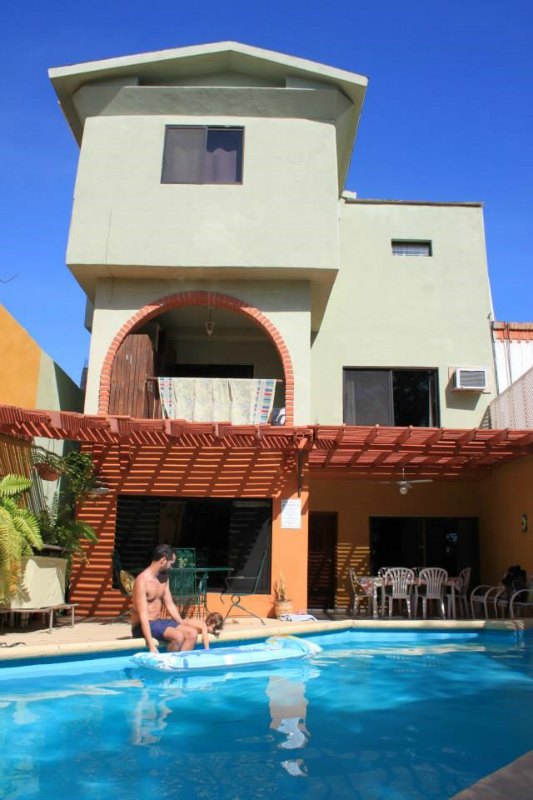 A Loreto abbiamo soggiornato in una grande a ariosa stanza trovata appena giunti in città, in un complesso di piccole casupole in muratura intorno a una verde piscina orlata da palme, e con una bellissima vista sul lungo mare – mi pare fosse l’hotel Oasis. Ancora una volta, presentandoci senza prenotazione, spuntiamo sconti di bassa stagione rispetto alle tariffe normalmente applicate.