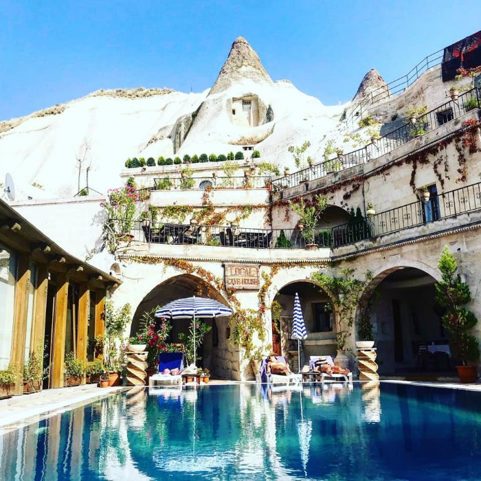 Alloggiamo al Local Cave House Hotel, un piccolo angolo di paradiso che si trova proprio dentro una delle tante formazioni rocciose presenti nella zona di Goreme. Costo per 3 notti per 2 adulti e 1 bambino con prima colazione 178€. Struttura che si trova in pieno centro. Super comoda per un giro serale o come punto di inizio di tanti cammini.