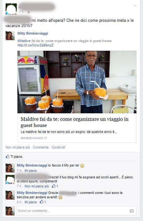 Sono decine le famiglie italiane che hanno seguito i nostri consigli, scegliendo di vivere un’esperienza indimenticabile alle Maldive e, grazie al passaparola, la guesthouse presso la quale abbiamo alloggiato è diventata talmente popolare in Italia da concentrare il suo business proprio verso il mercato italiano.