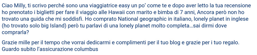 Dopo l’enorme seguito che il nostro viaggio alle Hawaii ha riscontrato sui social e sul blog, arrivano i primi feedback anche su una destinazione così lontana: