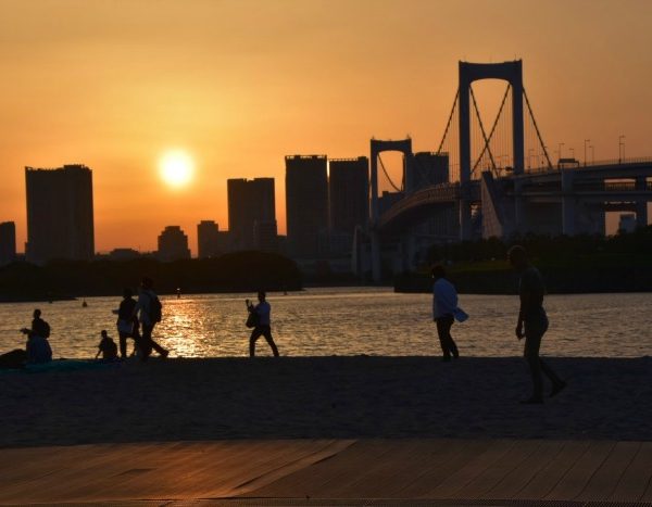 Fino ad Odaiba Seaside Park ci vogliono 50min ed in una bella giornata di cielo blu il tempo passa piacevolmente mentre si riposano le gambe e si osserva la città da una prospettiva nuova. Ad Odaiba abbiamo passeggiato qua e là: la spiaggia, il Gundam, Venus Fort e Palette Town.