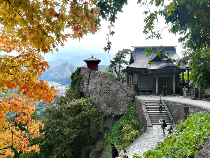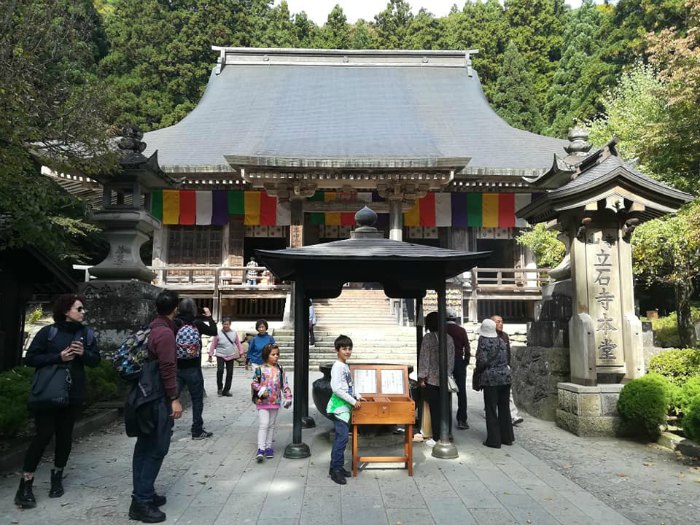 Il tempio Risshakuji, che è la parte principale, è stato fondato nell’860 DC, come succursale dell’Enryakuji del monte Hiei, vicini a Kyoto e, sebbene la struttura negli anni è stata più volte ricostruita, la fiamma rituale portata dell’Enryakuji ancora brucia al suo interno.