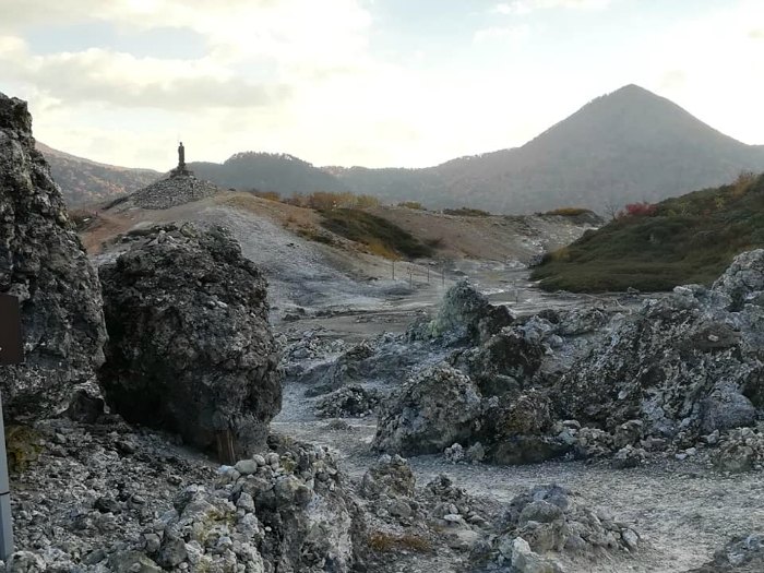 Il tempio del monte Osorezan è posizionato sopra la caldera di un vulcano in attività, che regala un paesaggio meravigliosamente insolito. Il monte Osorezan, assieme al monte Koya e al Hiei, fa parte dei tre posti più sacri di tutto il Giappone e si crede sia la porta dell’aldilà.