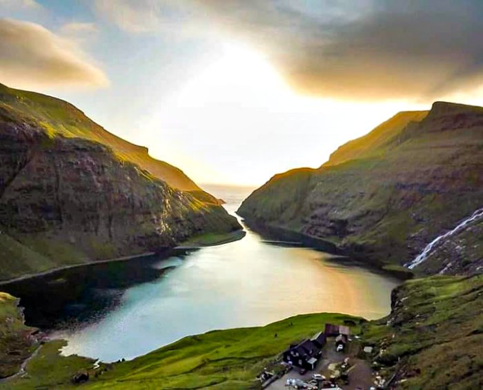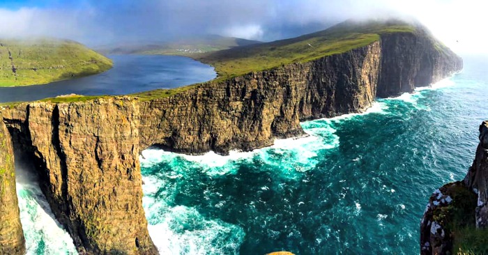 2. Lago Leitisvatn. Il trekking parte da Midvagur, lungo circa 5/6 km (2 ore) facile, ma l’ultimo tratto è in pendenza su scogliera a picco sul mare, prestare attenzione. Il trekking porta al lago « sospeso » più grande delle Faroe e alla cascata di Bøsdalafossur. È a pagamento perché su terreno privato. Imperdibile. (Nota: purtroppo nella parte finale stanno costruendo degli scalini per aiutare i turisti a raggiungere la cima della scogliera 🙄).