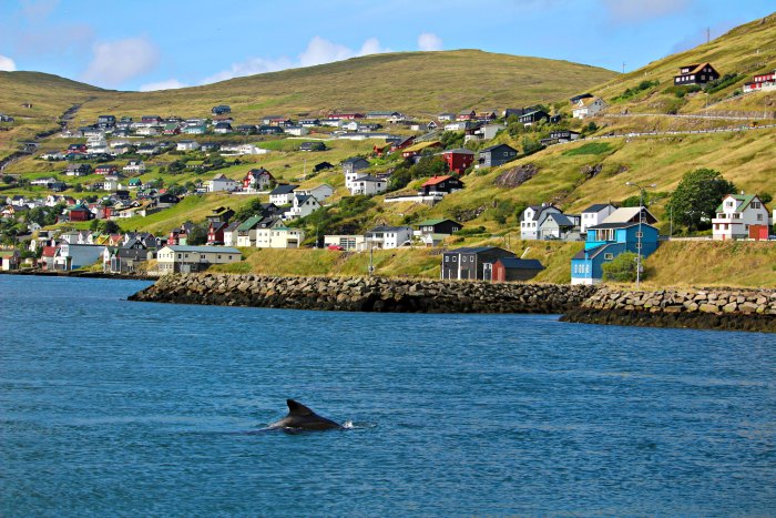 3. Vestmanna. Giro in battello per vedere le scogliere più alte delle Faroe. È imperdibile. Faraglioni rigogliosi a strapiombo sul mare con tantissimi uccelli, pecore spericolate in bilico sulle scogliere e foche. Nel porto di Vestmanna (3 case e un centro informazioni turistiche) abbiamo visto 3 globicefali e un cucciolo nuotare tranquilli nelle acque davanti alla passeggiata e al ristorante. Qui abbiamo pranzato per azzardo al centro informazioni, perché eravamo in ritardo per la partenza del battello, una sorpresa: la zuppa di pesce più buona della vacanza.