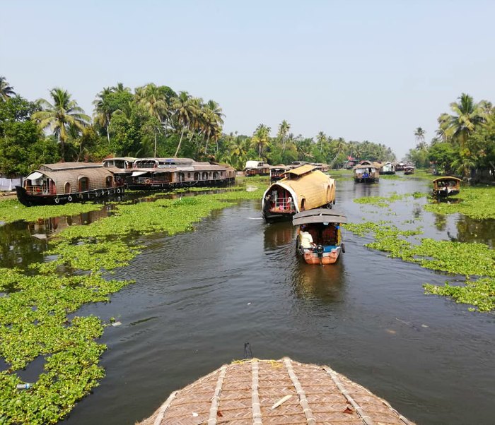 Ci siamo imbarcati il 29 dicembre da Alleppey, navigato fino alle 17.00 e abbiamo pranzato, cenato e dormito a bordo. Il giorno dopo, colazione alle 8.30 siamo ripartiti e tornati ad Alleppey alle 9. 30. Il costo per un giorno e una notte è stato circa 157 euro.