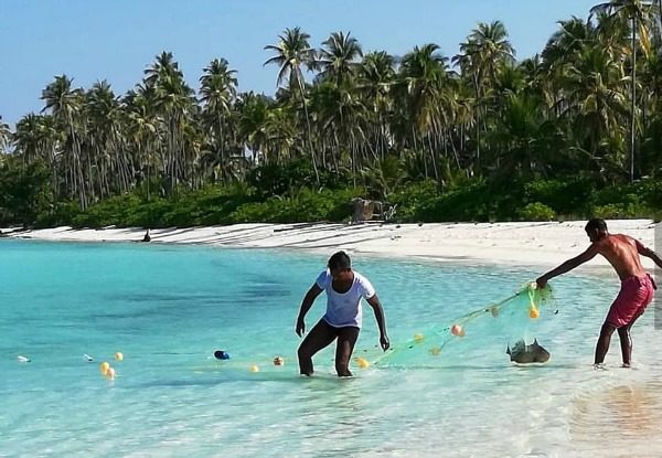 Alle Laccadive noi siamo stati sull’isola di Bangaram, che si raggiunge in un’ora di barca dall’isola principale dell’arcipelago, Agatti (qui si trova anche un piccolo centro medico). Bellissima, come le Maldive: acqua con le mille sfumature di verde, azzurro e blu. Belle escursioni per vedere pesci e coralli, sabbia bianca con qualche pezzetto di corallo qua e là.