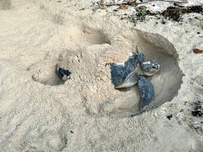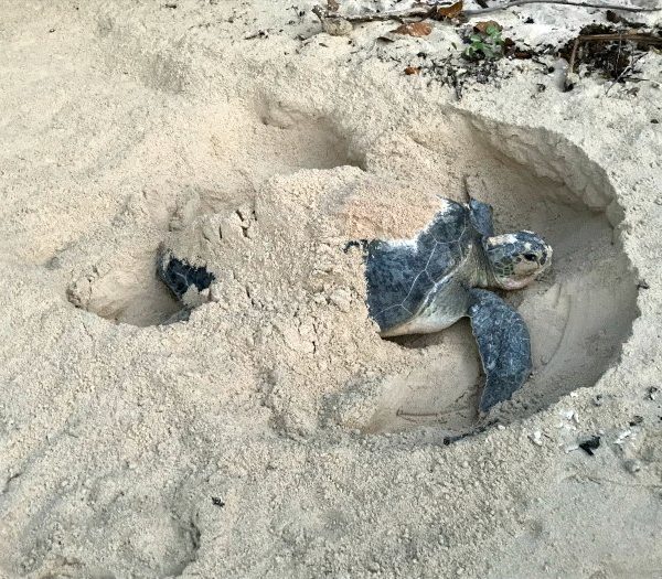 Il motivo per cui siamo arrivati al Bubbles è che su questa spiaggia le tartarughe vengono a deporre le uova. Ci sono tanti ragazzi volontari che durante la notte, ogni ora, fanno la ronda lungo la spiaggia per vedere se ci sono tartarughe e nel caso ce ne fossero, vengono a chiamarti per poter assistere a questo magnifico regalo della natura! Si può decidere se farsi svegliare o no… sulle porte delle camere c’è una tartaruga in legno girevole con scritto “yes” o “no”. Noi abbiamo avuto la fortuna di essere stati svegliati due volte e la seconda, all’alba, è stata davvero suggestiva.
