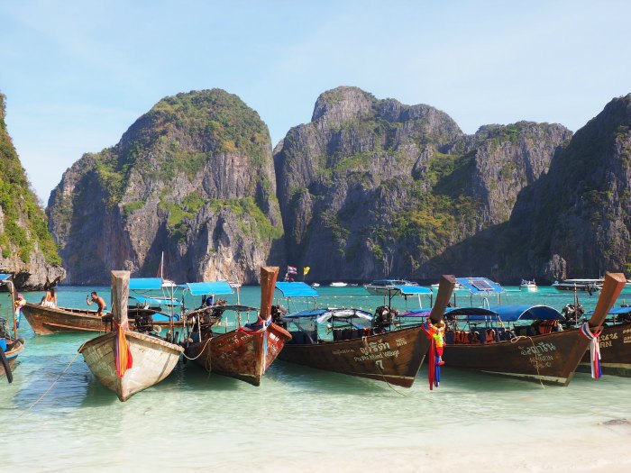 Escursione Phi Phi Ley, Maya Bay, Monkey Beach (da Laem Tong) longtail privata, mezza giornata 1500 BHT + 800 di tasse. La più famosa di tutte, siamo andati subito a Maya Bay prima che venisse presa d’assalto. Anche se siamo partiti molto presto, c’era comunque tantissima gente, ma si sa e si deve andare preparati. È una tappa per me comunque immancabile. Sulla Monkey beach siamo stati poco, giusto il tempo di vederla, le scimmie effettivamente sono un po’ “fastidiose” ma basta non avvicinarsi troppo. La sabbia in compenso la ricordo morbidissima!