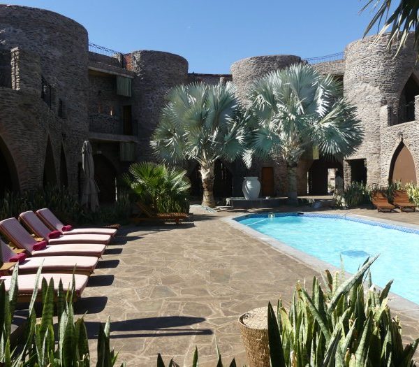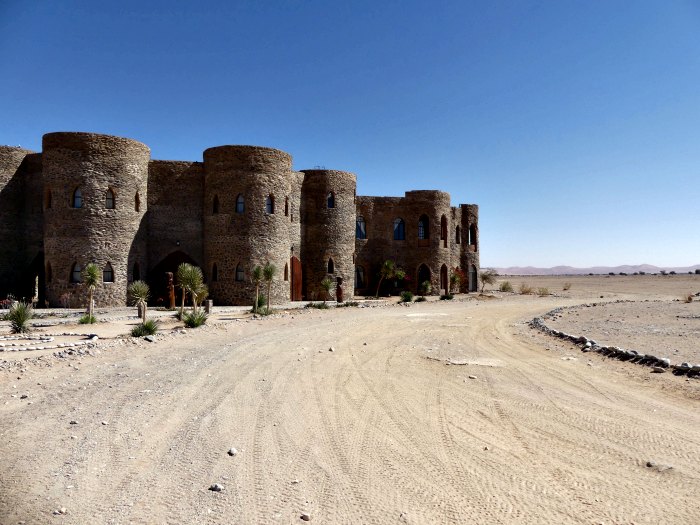 Qui abbiamo avuto la nostra prima vera esperienza con la guida nello sterrato, polvere, turbolenza continua in auto, e un paesaggio che cambiava di continuo. All’arrivo al lodge, dopo circa 4 ore nel nulla, i nostri occhi non credono a quello che vedono: il nostro lodge era una sorta di castello che si mimetizzava quasi con il paesaggio e le dune rosse del Namib Desert alle spalle, Le Mirage.