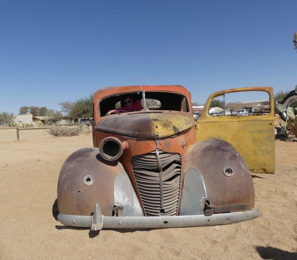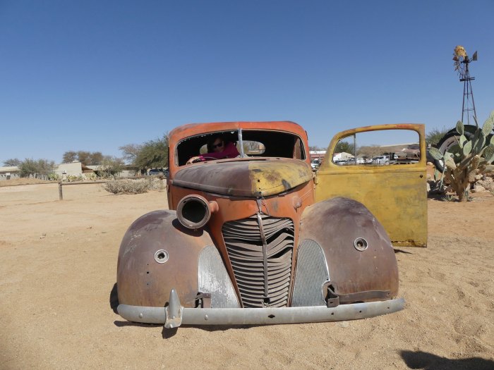 Saliti in macchina la mattina e arrivati a destinazione la sera, con tappa lungo il percorso a Solitaire, tappa d’obbligo alla famosa pasticceria di Moose McGregor per una fetta di torta alle mele calda, il tutto avvolto da sabbia, polvere, cactus e rottami d’auto, che sembrano il set di un film western, o una scena del film Cars.