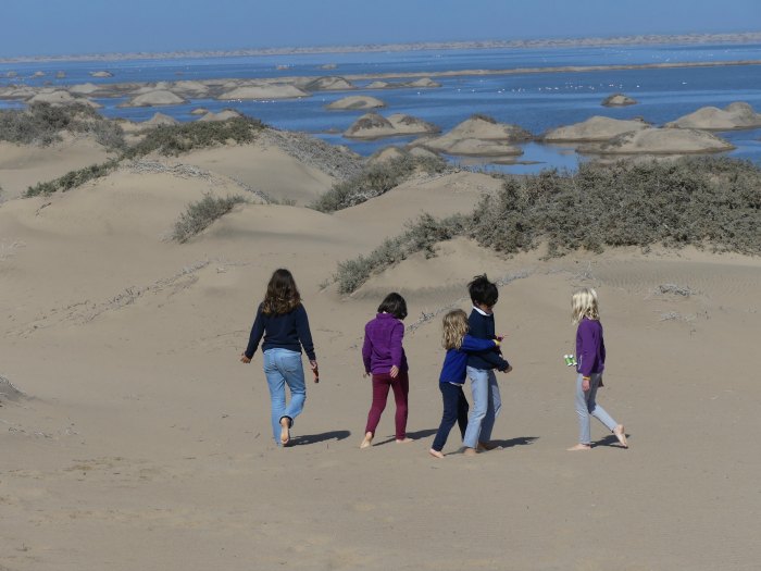 Momento foto di rito sulla cima, toccare con le mani la sabbia fine e sorpresa delle sorprese, la sabbia non sporca i piedi… e poi giù di corsa dalla duna (divertimento assicurato per grandi e piccoli), sembra di volare, ma allo stesso tempo è anche un po’ faticoso, si sprofonda ad ogni balzo, ma la magia che si respira è unica.