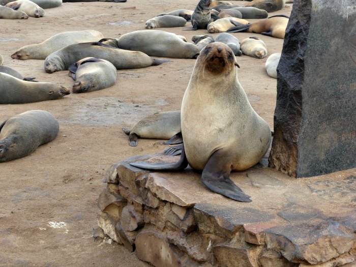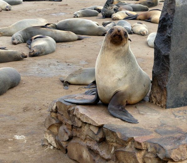 Prima tappa la colonia di otarie più numerosa di tutta l’Africa. A parte l’odore nauseabondo è uno spettacolo vedere queste otarie spiaggiate, la maggior parte mamme con i loro cuccioli, sembra di essere all’interno di un documentario.