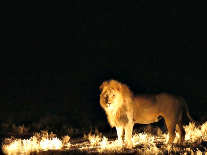 Il game fatto con la guida ci permette di vedere il leone in tutta la sua bellezza di notte, mentre dorme, ma disturbato poi dal faro della guida si alza, ruggisce e si avvicina a noi, a pochi metri e lo vediamo in tutta la sua bellezza (da brividi), vediamo anche un esemplare di rinoceronte.