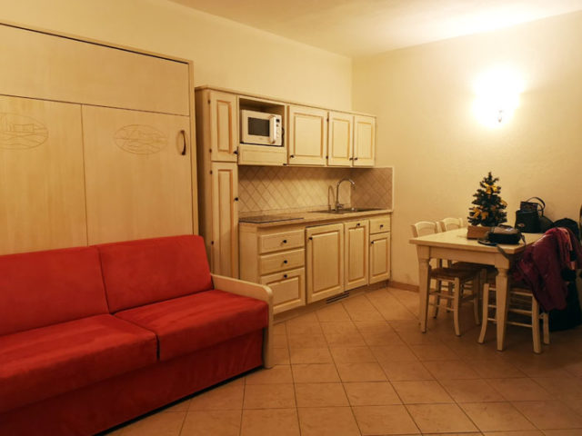Chi arriva in camper ha a disposizione le piazzole del campeggio. In alternativa, si può dormire nel residence, dove sono presenti diversi appartamenti, perfetti per le famiglie, che mettono a disposizione anche la cucina attrezzata per chi preferisce gestire i pasti in autonomia.