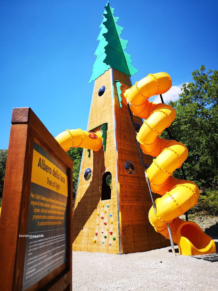 Il grande Albero della Luce è alto 16 metri e consente di arrampicarsi e scendere giù per gli scivoli alti e tortuosi.