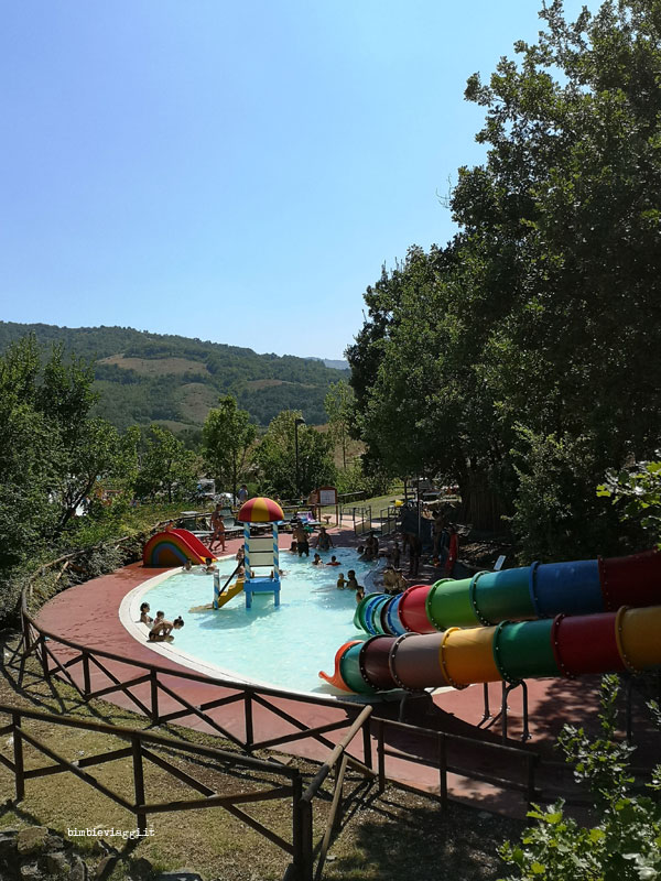 Di fianco allo Spray Park c’è una mini vasca relax per i piccolissimi, con una bella cascata al centro.